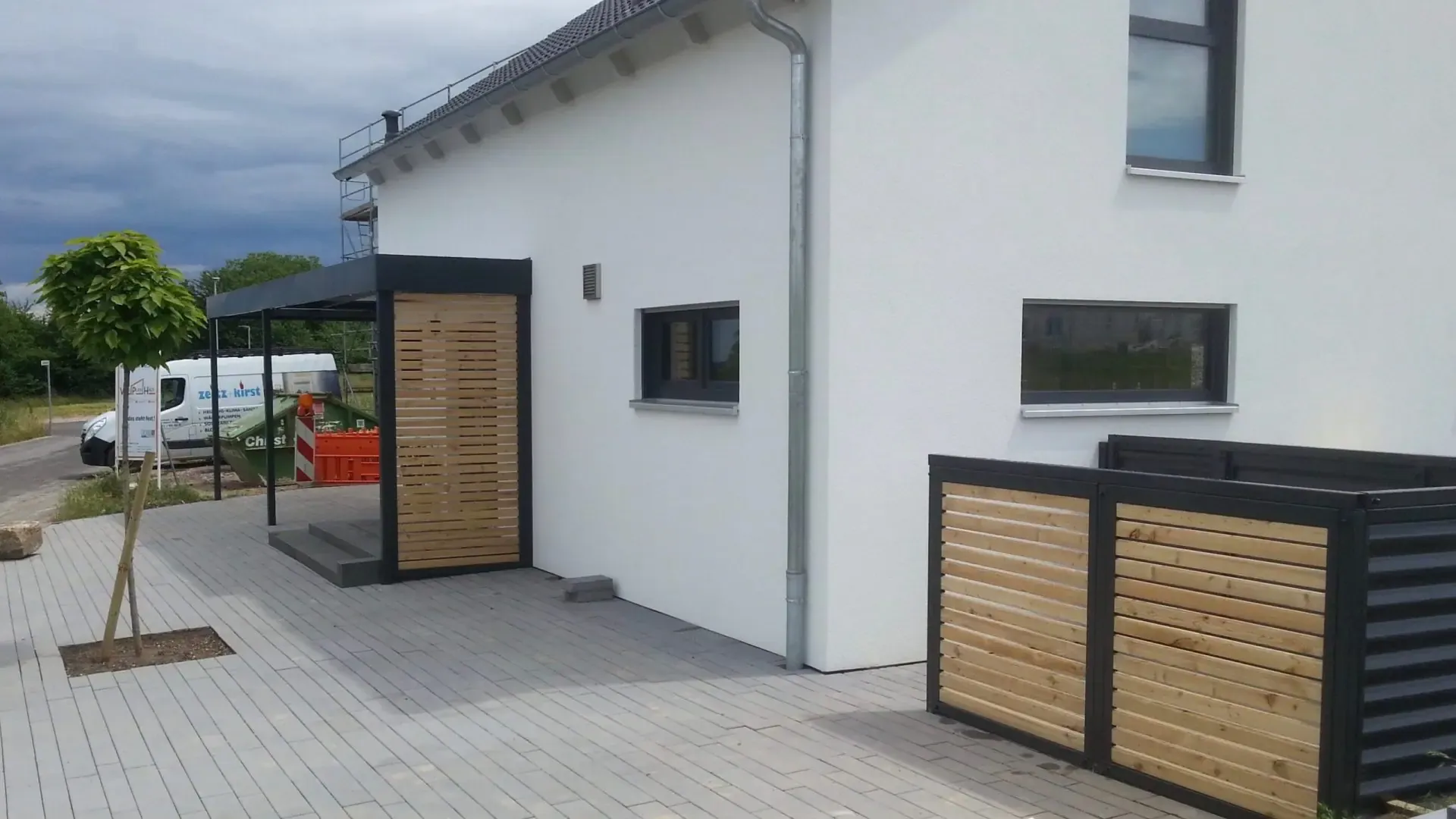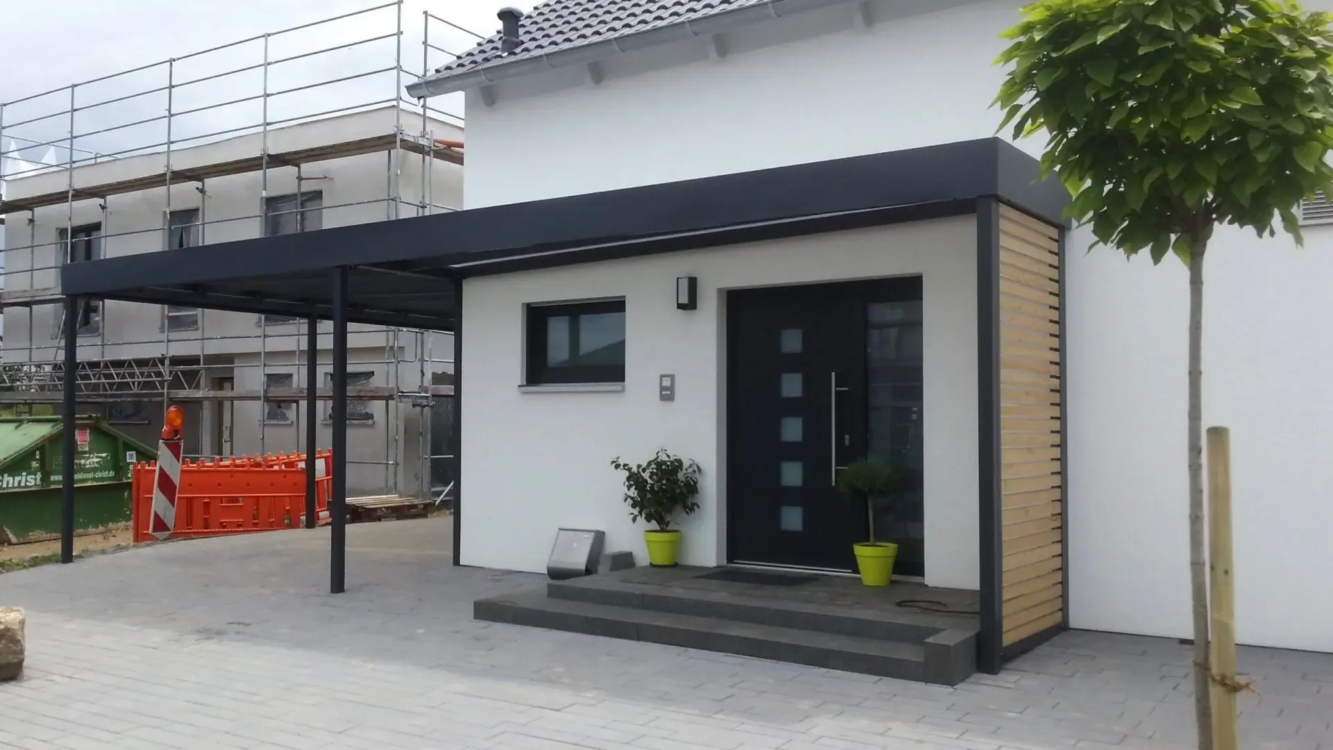 Bei diesem Carport mit Eingangsüberdachung in Rheinland-Pfalz konnte unser Kunde von Beginn an auf zahlreiche Serviceleistungen von der Projektplanung bis zur Montage setzen.