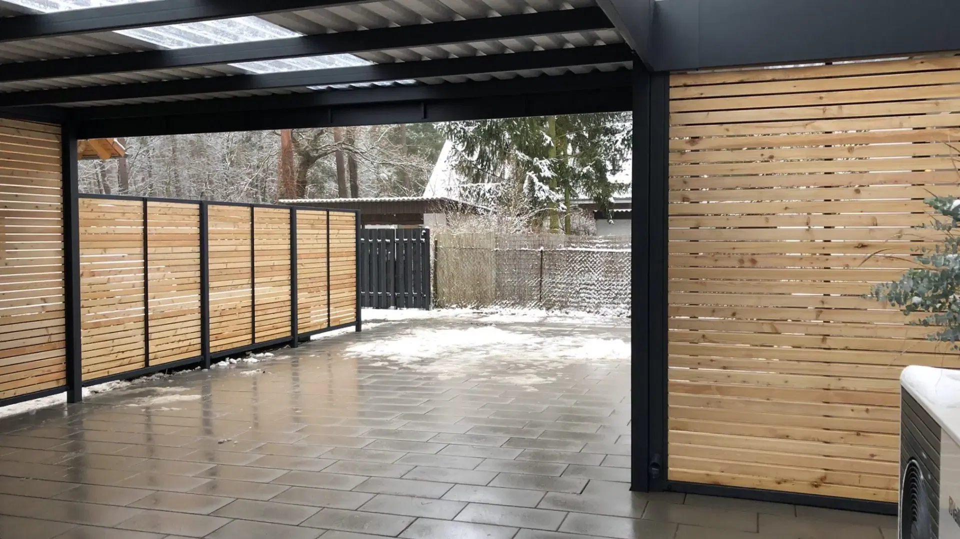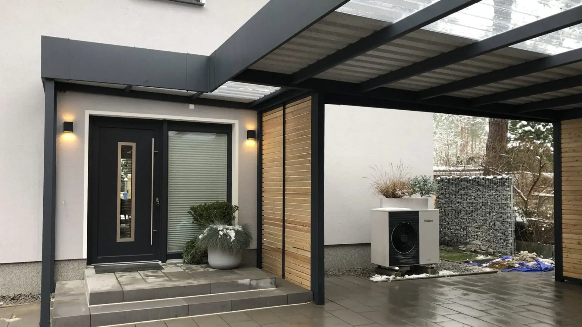 Bei diesem Carport mit Eingangsüberdachung in Berlin konnte unser Kunde von Beginn an auf zahlreiche Serviceleistungen von der Projektplanung bis zur Montage setzen.