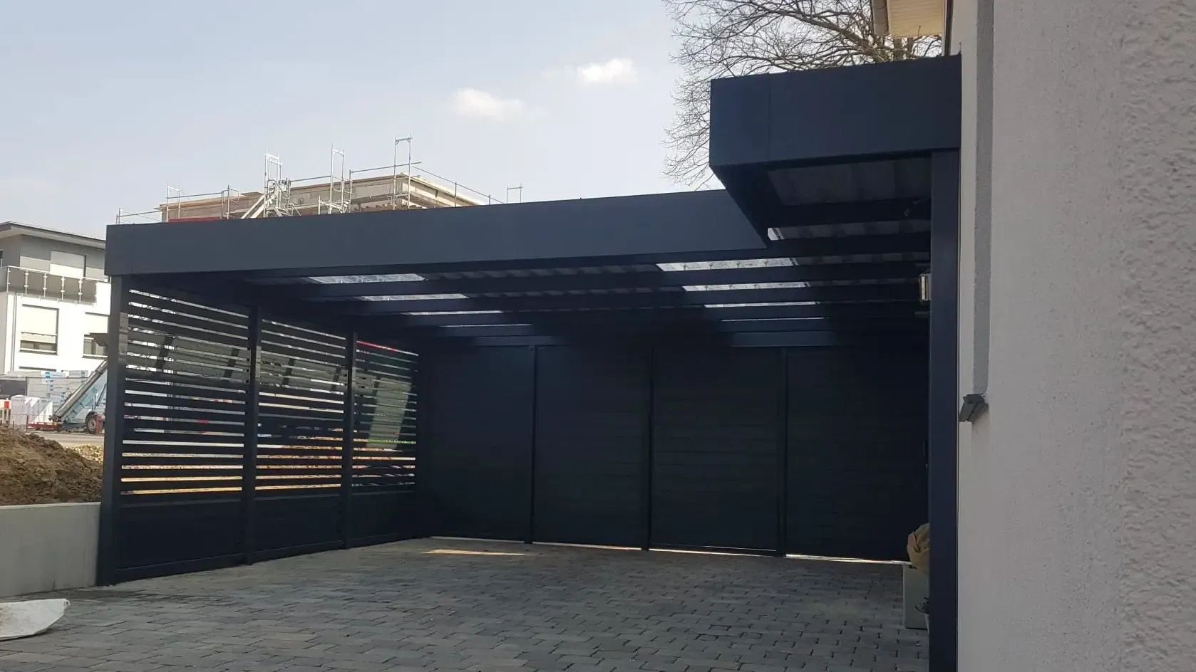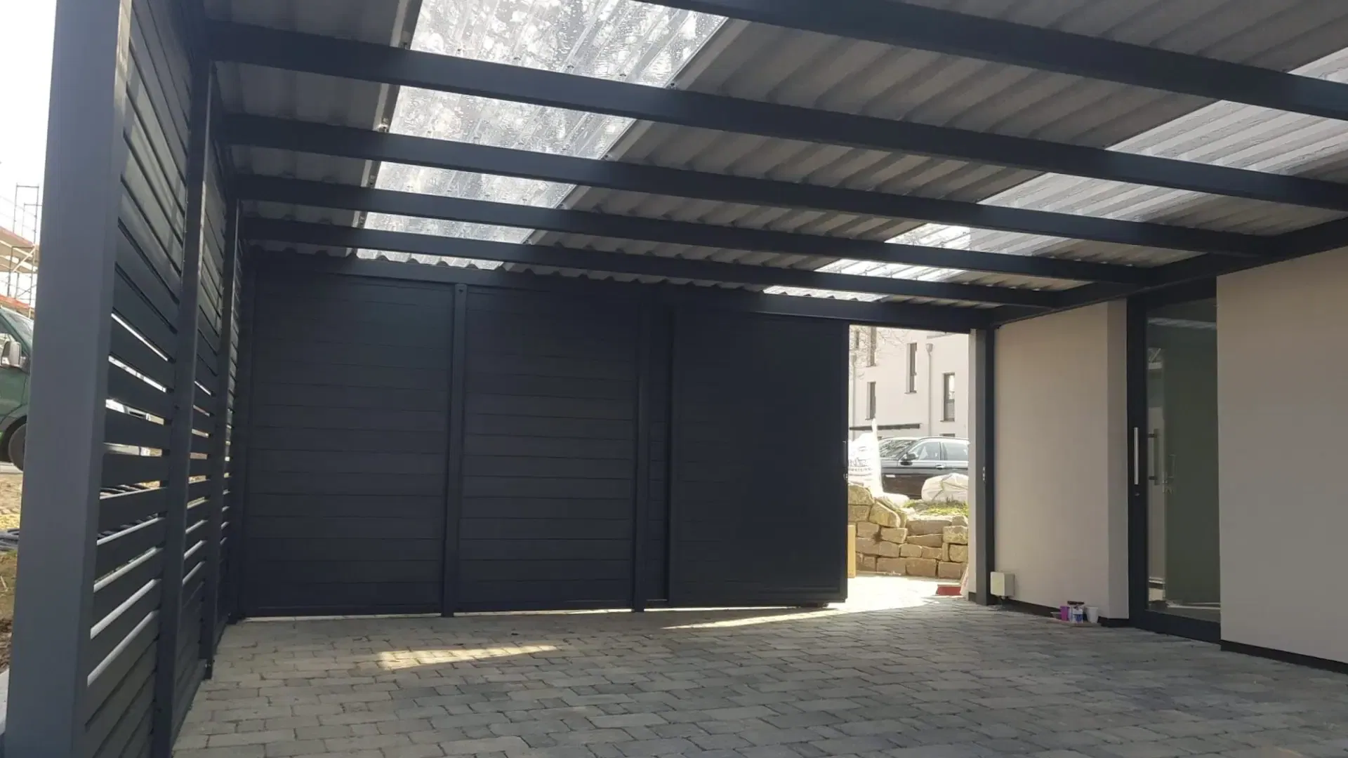 Bei diesem Carport mit Eingangsüberdachung in Nordrhein-Westfalen konnte unser Kunde von Beginn an auf zahlreiche Serviceleistungen von der Projektplanung bis zur Montage setzen.