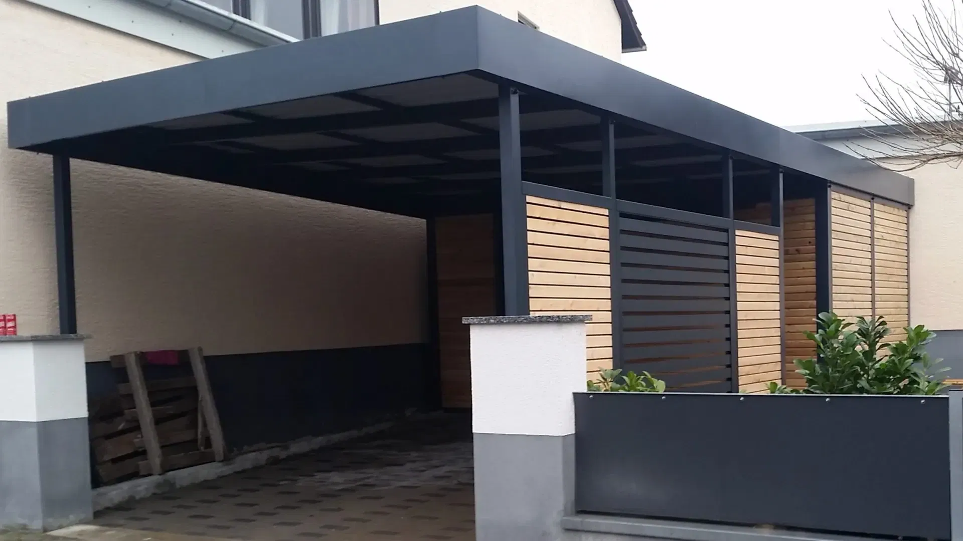 Bei diesem Carport mit Schuppen in Hessen konnte unser Kunde von Beginn an auf zahlreiche Serviceleistungen von der Projektplanung bis zur Montage setzen.