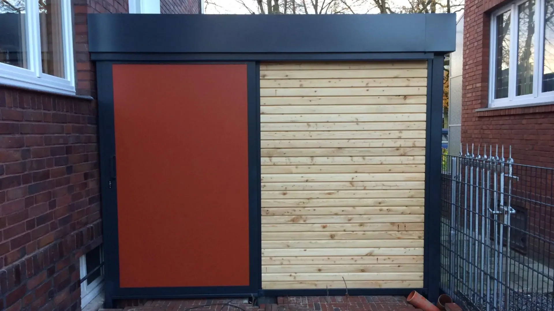 Als Farbe für diesen Carport mit Schuppen wurde RAL 7016 anthrazit gewählt.