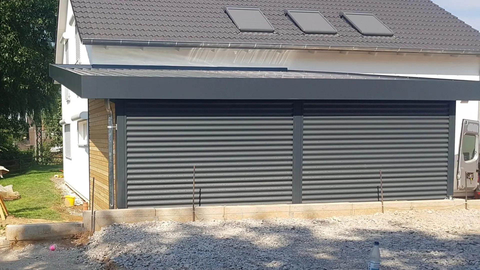 Als Farbe für diesen Carport mit Schuppen wurde RAL 7016 anthrazit gewählt.