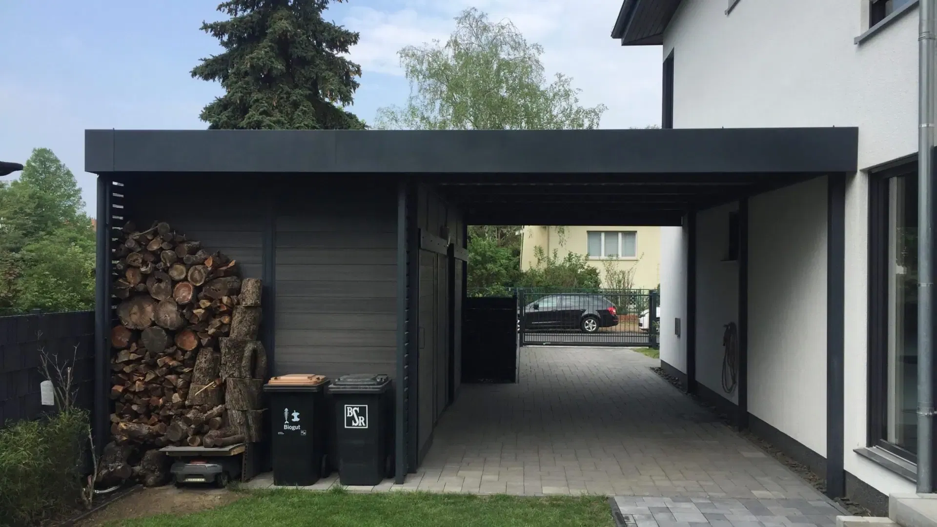Bei diesem Carport mit Schuppen in Berlin konnte unser Kunde von Beginn an auf zahlreiche Serviceleistungen von der Projektplanung bis zur Montage setzen.