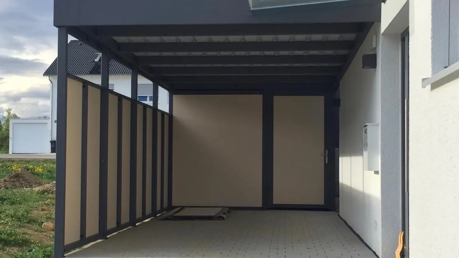 Bei diesem Carport mit Schuppen in Baden-Württemberg konnte unser Kunde von Beginn an auf zahlreiche Serviceleistungen von der Projektplanung bis zur Montage setzen.