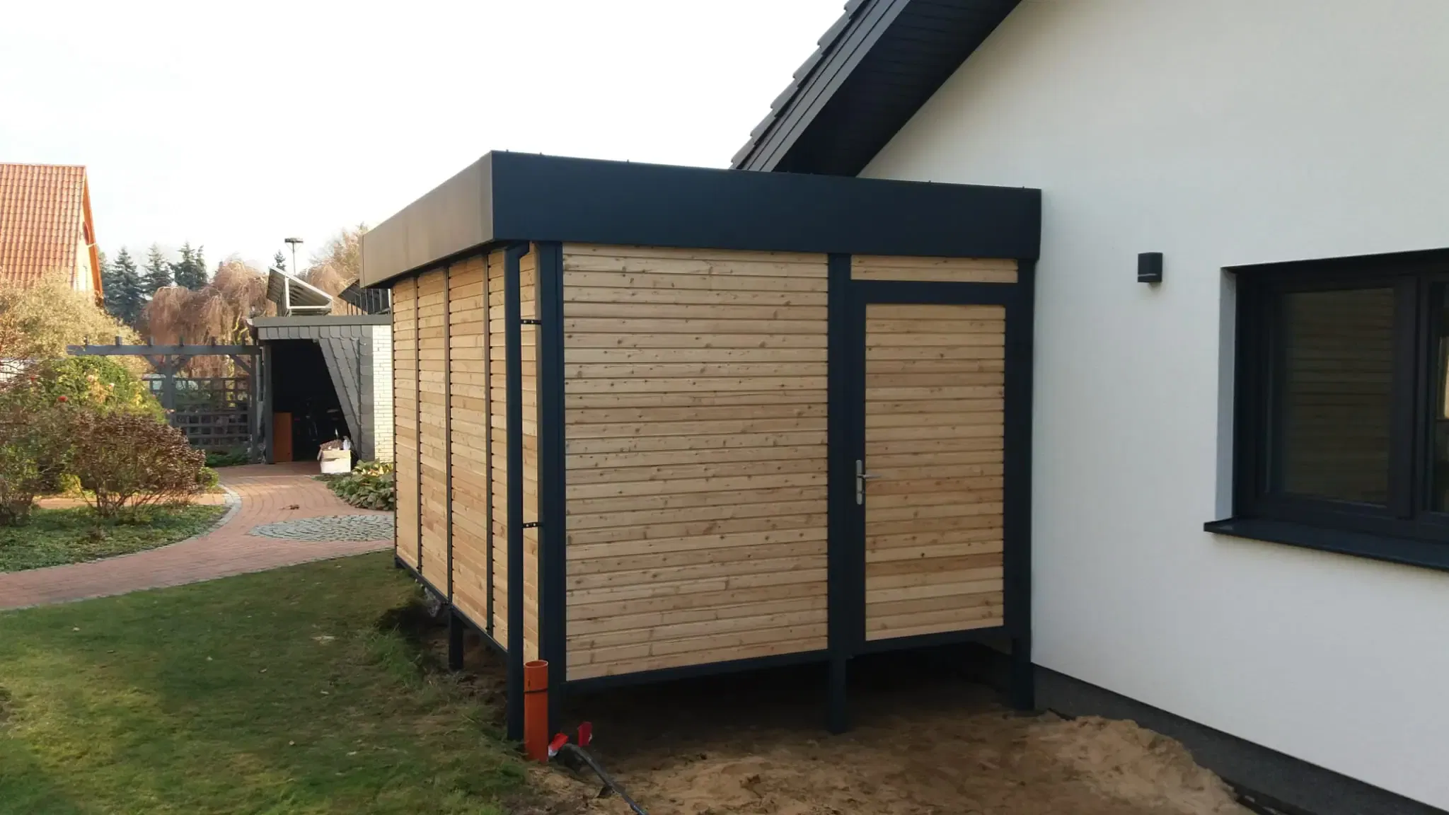 Bei diesem Carport mit Schuppen in Niedersachsen konnte unser Kunde von Beginn an auf zahlreiche Serviceleistungen von der Projektplanung bis zur Montage setzen.