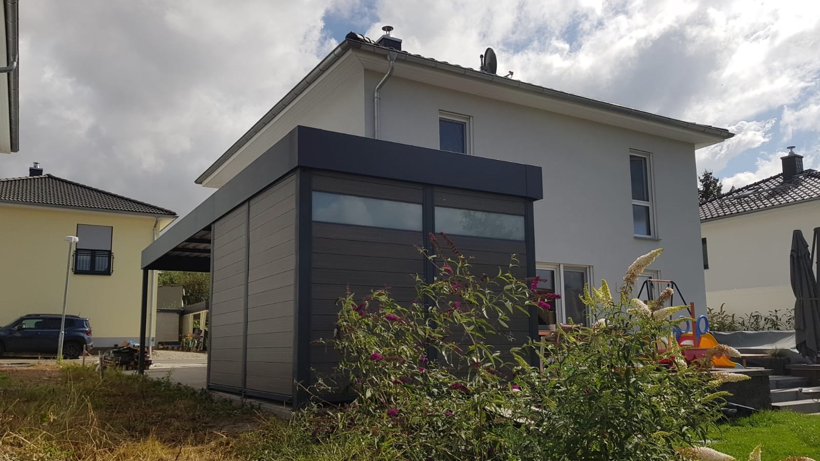 Carport mit Schuppen in der Farbe RAL 7016 anthrazit