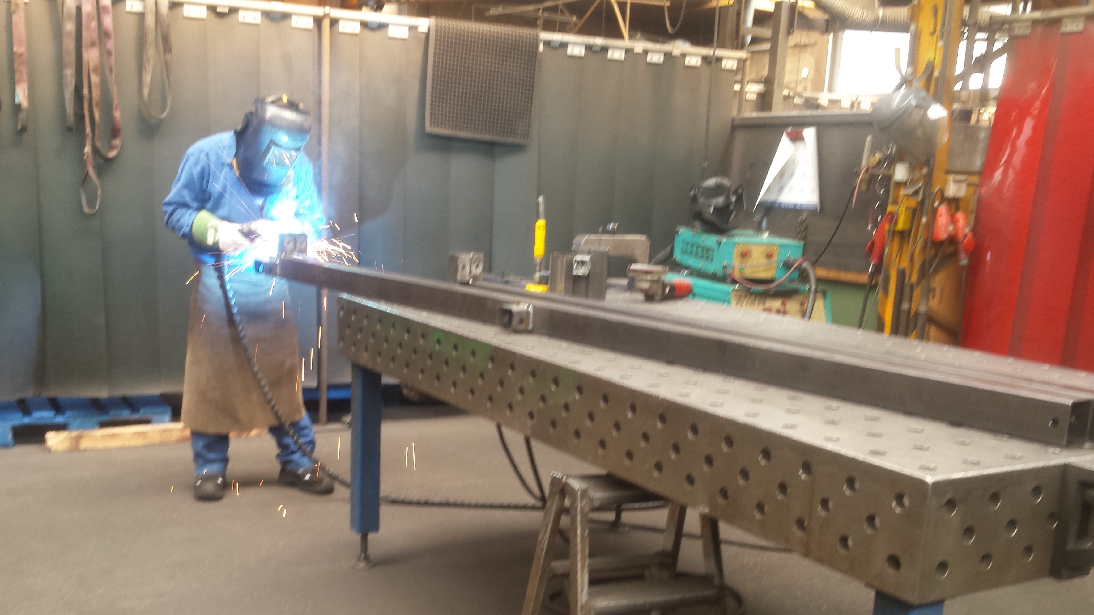Sobald die Lieferung vom Stahlhändler eintrifft, wird mit der Bearbeitung der Stahlprofile und Bleche begonnen.