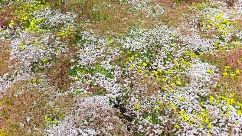 Die Pflanzen einer Dachbegrünung sind schön anzusehen. Die Zusammenstellung der Pflanzen aus Stauden, Wildblumen und Kräuterpflanzen lässt das Carportdach zu jeder Jahreszeit in einer anderen Farbe erscheinen.