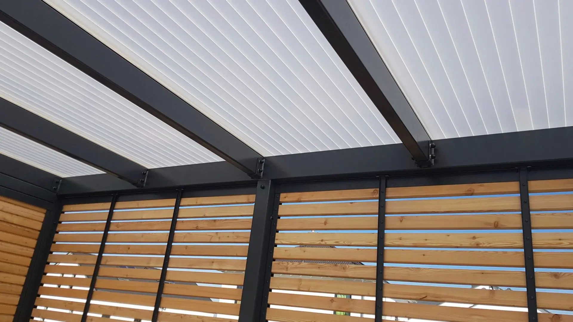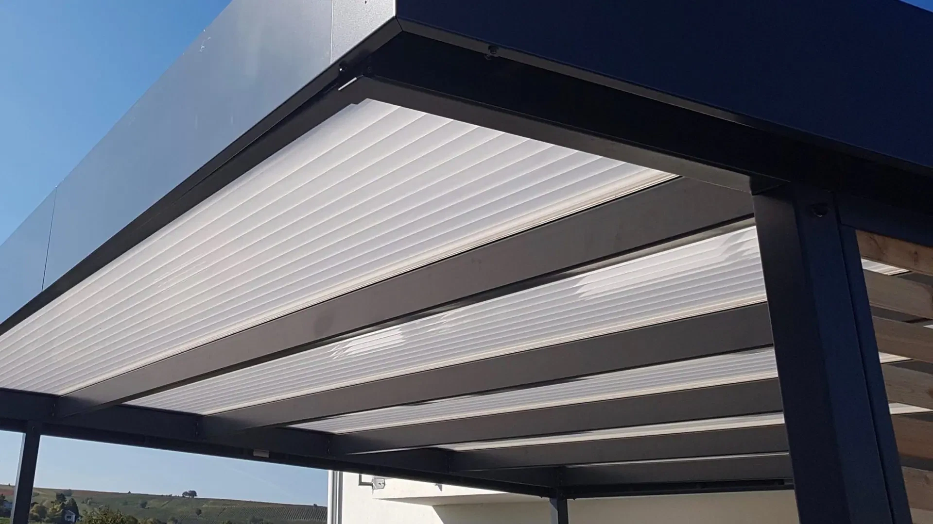 Als Farbe für diesen Doppelcarport mit Schuppen wurde RAL 7016 anthrazit gewählt.