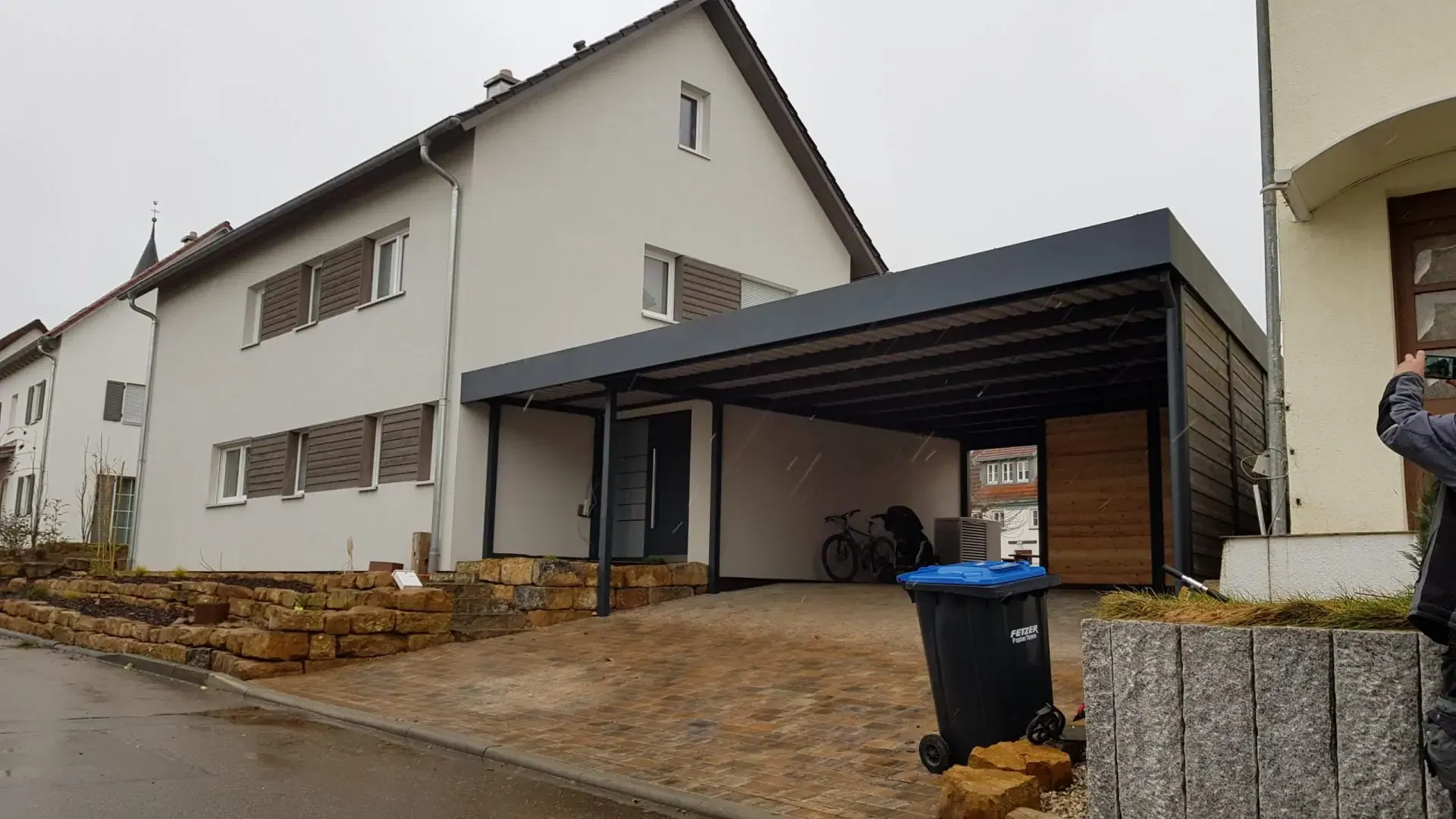 Bei diesem Doppelcarport mit Schuppen in Baden-Württemberg konnte unser Kunde von Beginn an auf zahlreiche Serviceleistungen von der Projektplanung bis zur Montage setzen.