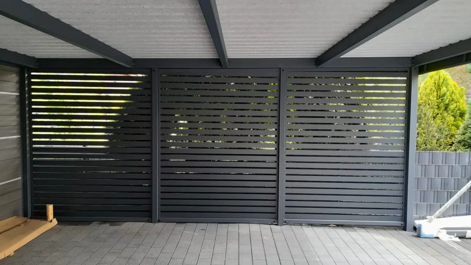 Als Farbe für diesen Doppelcarport mit Schuppen wurde RAL 7016 anthrazit gewählt. Bei Interesse am Preis für dieses Projekt nehmen Sie bitte Kontakt zu uns auf.
