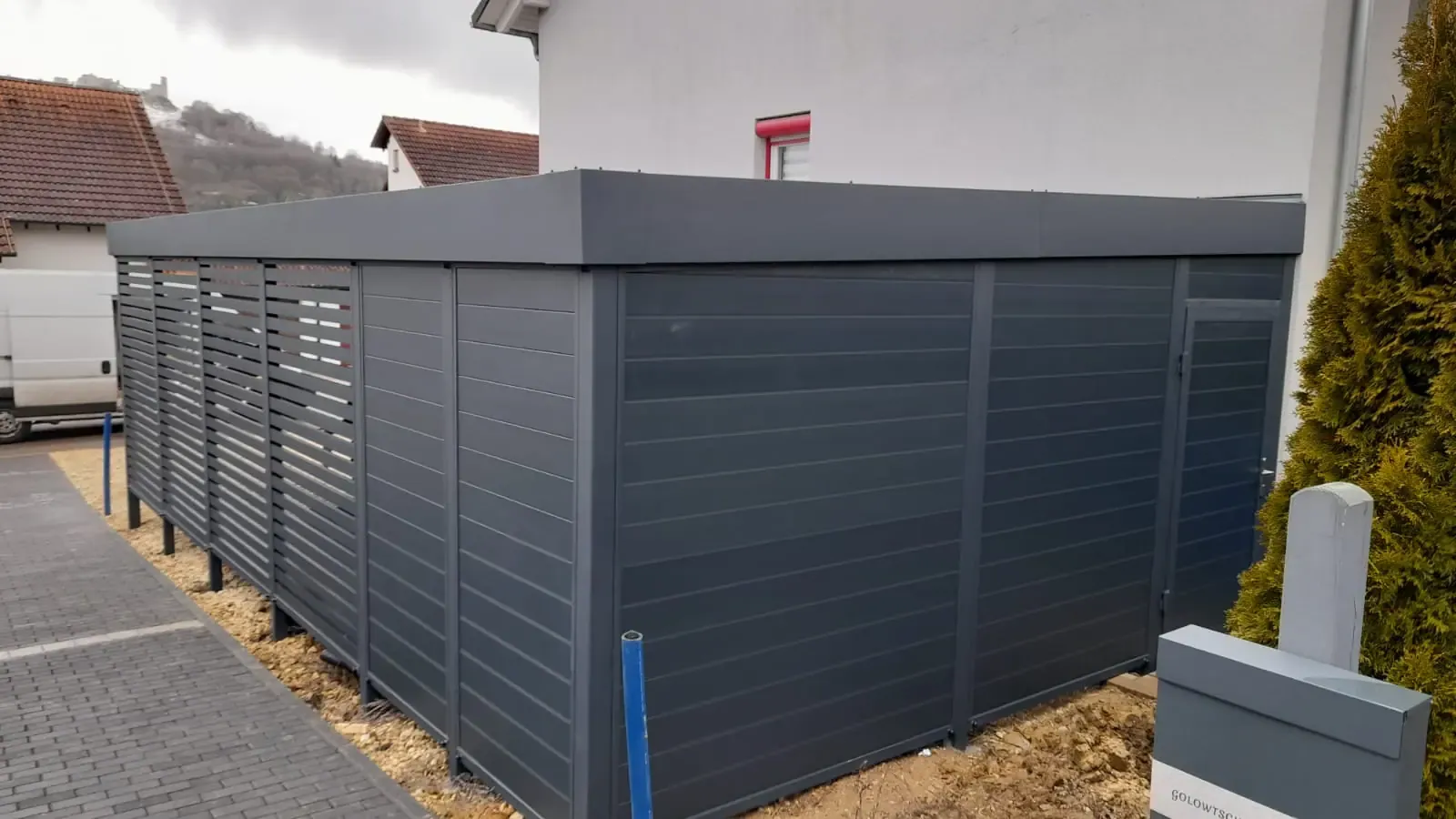 Bei diesem Doppelcarport mit Schuppen in Baden-Württemberg konnte unser Kunde von Beginn an auf zahlreiche Serviceleistungen von der Projektplanung bis zur Montage setzen.