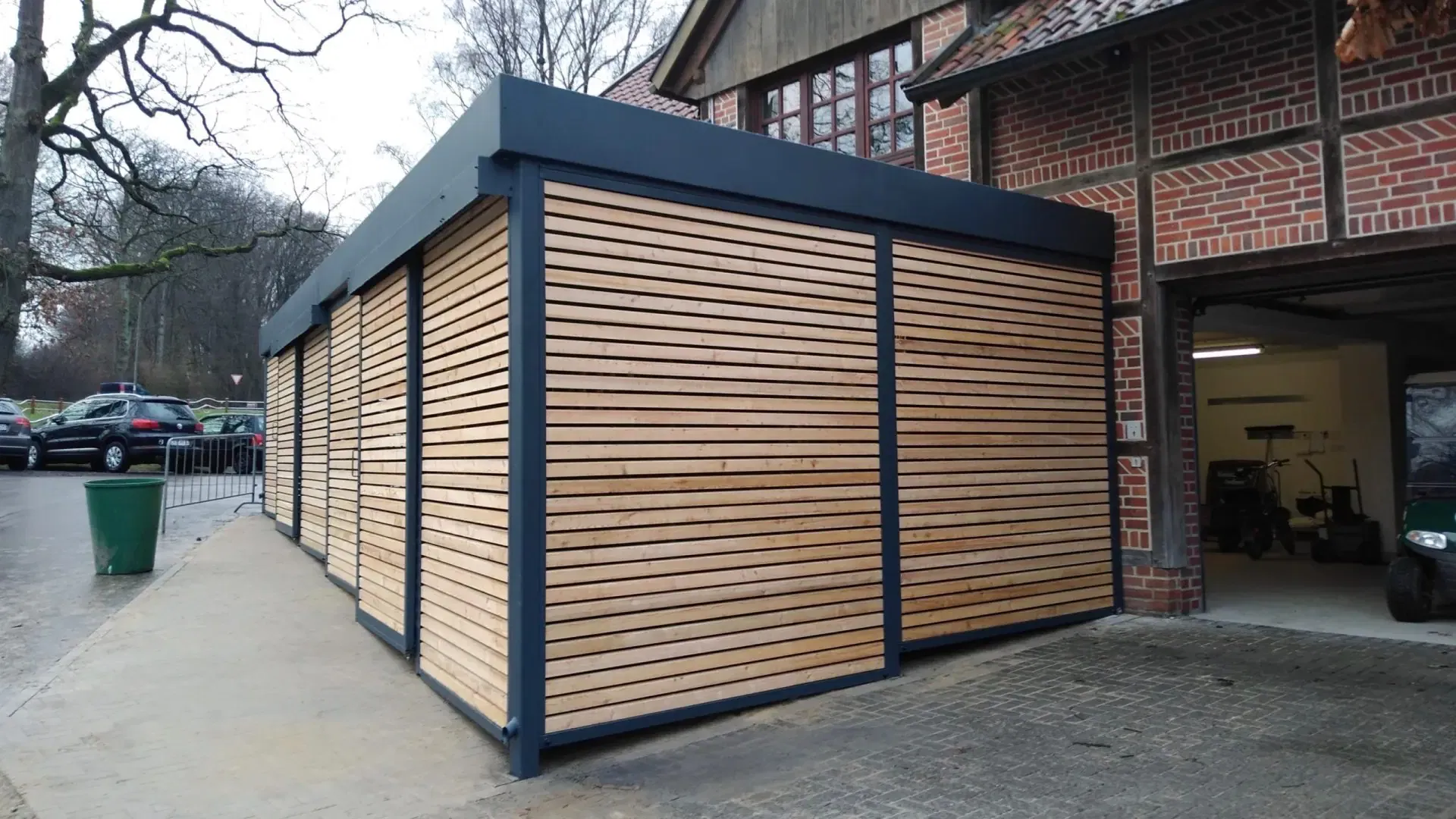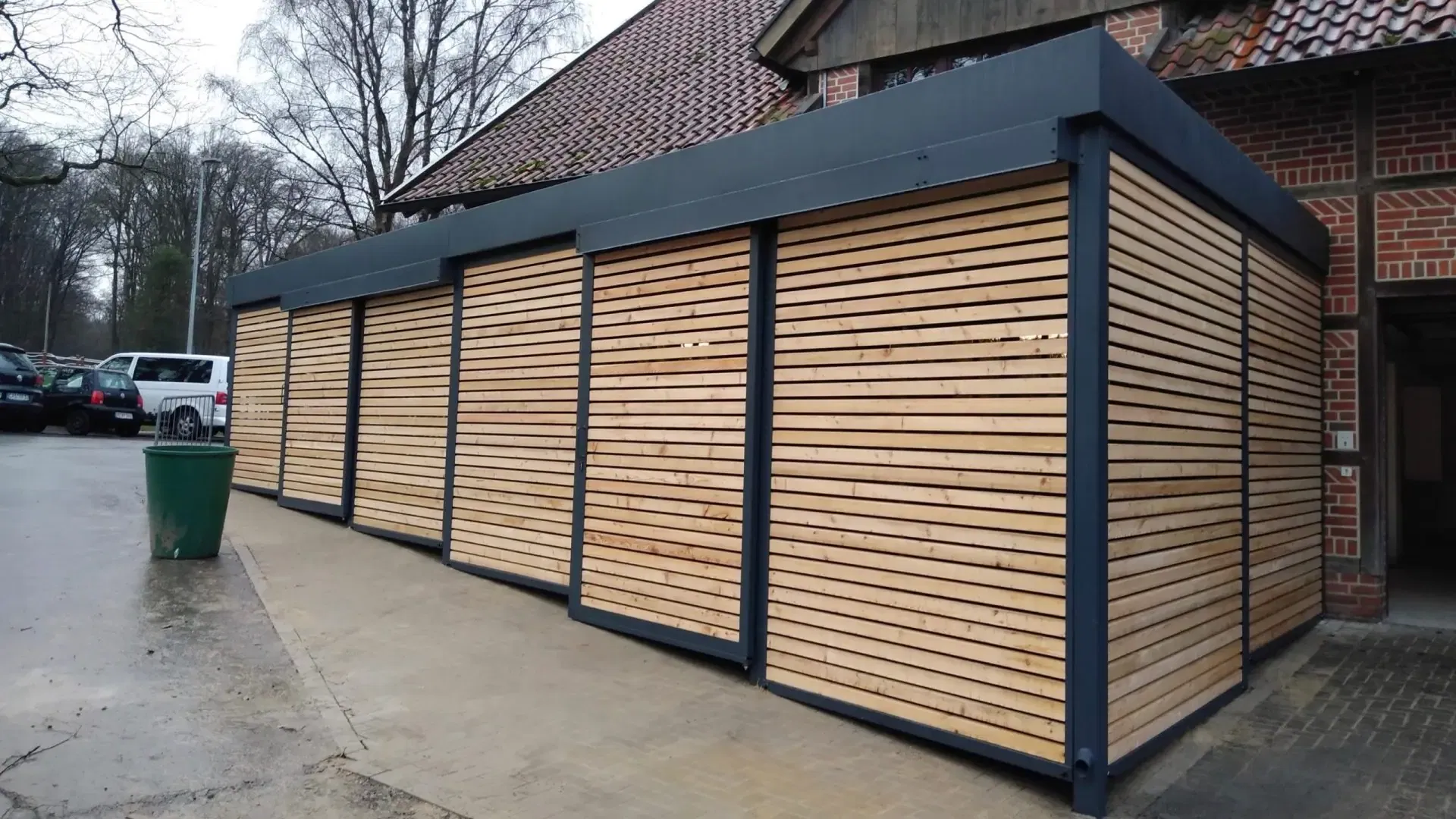 Bei diesem Fahrradschuppen in Nordrhein-Westfalen konnte unser Kunde von Beginn an auf zahlreiche Serviceleistungen von der Projektplanung bis zur Montage setzen.