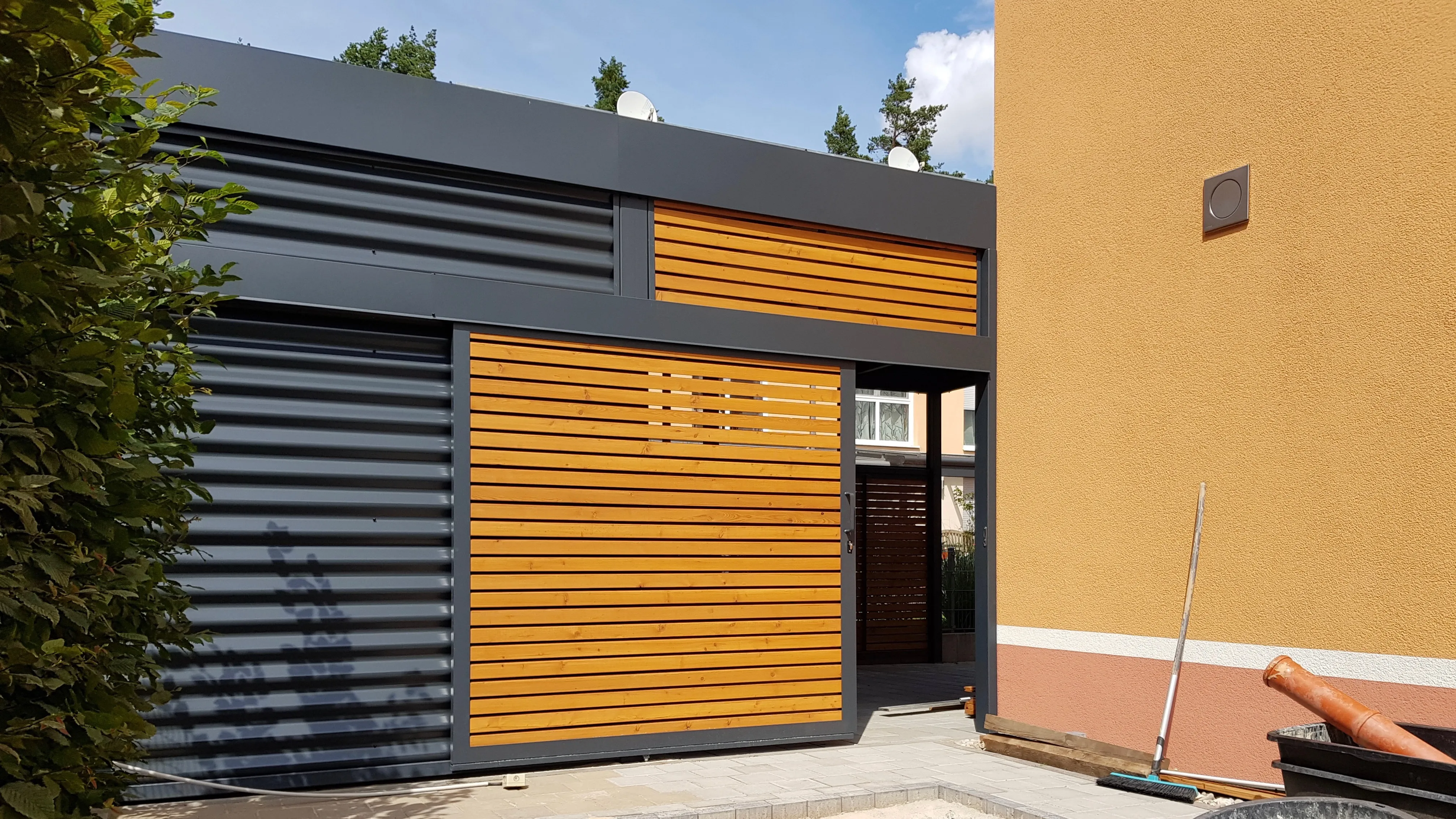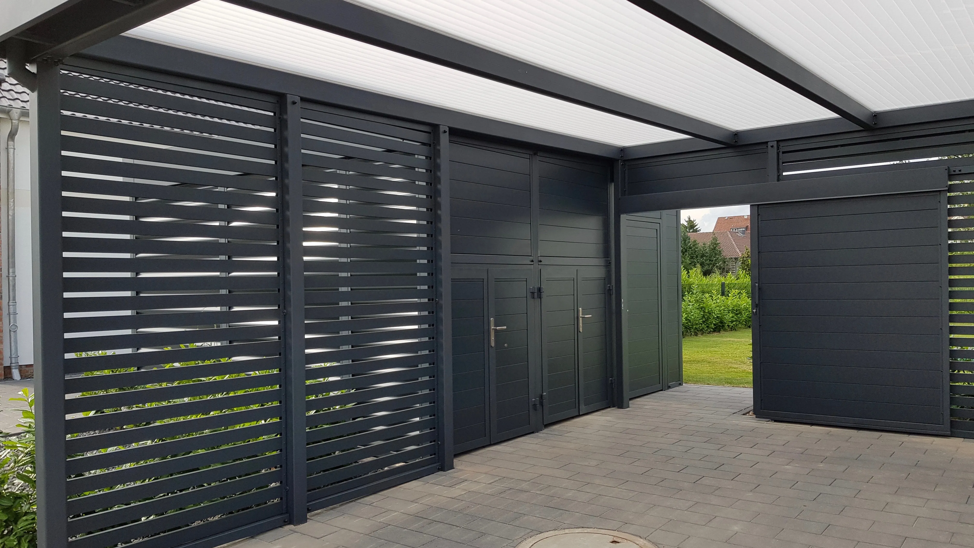 Türen und Tore für Ihren Carportschuppen und integrierte Trenn- und Sichtschutzwände. In jeder Breite, Höhe und Funktion, immer nach Maß gefertigt.