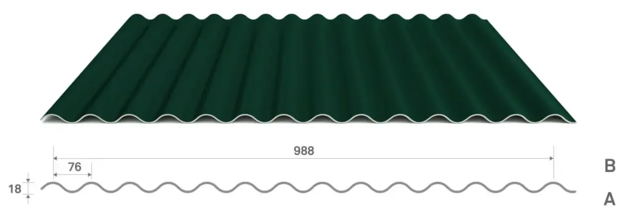 Das Wellblech aus Stahl ist einseitig in RAL-Farbe beschichtet (Schichtstärke 25 µm). Die Rückseiten sind mit einem Rückseitenschutzlack (RSL Schichtstärke ca. 10 µmI in der Farbe grauweiß (ähnlich RAL 9002) versehen.