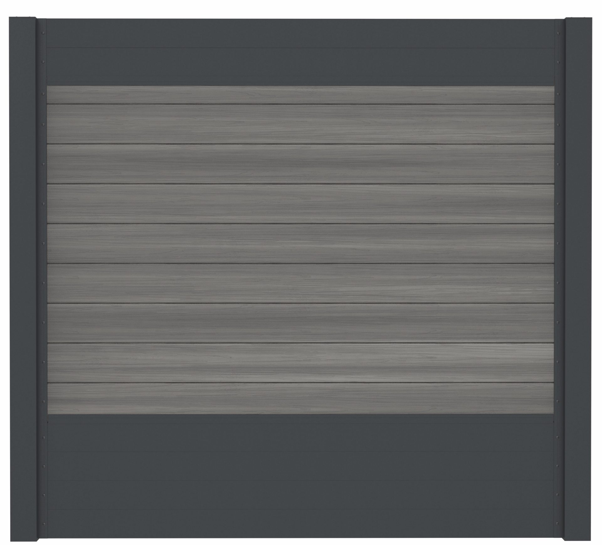 - Aluminium oben und unten, WPC 6 x oben oder 9 x mittig in der Wand